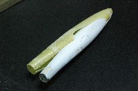 ポッドはラッカーパテで表面調整。若干の重量増加が見込まれますが、ノーズが少々重くなるのは良しとします。 |