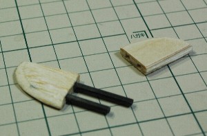 ペグの製作 材料は1ミリ航空ベニア、2ミリバルサ、1ミリバルサです。 製作順は です。 |