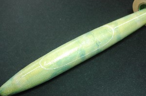 塗装後写真。 ブラックにすると、重いイメージになるのでダークグレーとブラックのグラデーション塗装しました。我ながら結構いけてます。 量っていませんが、パテによる調整と、重ね塗りで2〜3g重くなった気がします。若干・・と思って気を緩めていました。 |