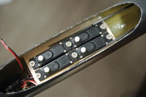 サーボは定番のD47(TamazoTS-1002) 最近はR/C HOBBYさんよりOME品が安く購入できますのでR/C HOBBYさんより購入 中央部はツバの部分を重ねてコンパクト化。わずかながらも重心調整に役立ちます。 |