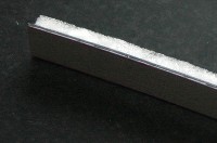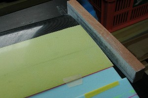 エポキシ硬化後の写真。 圧締方法が悪く、浮きが出来たので爪楊枝を入れてホジホジしていると、剥がれが広がりました。で、指でつまんで引っ張るとパリッと剥がれてしましました。なんてこった( ̄▽ ̄;)!!ガーン サンドペーパーで表面を荒らすのを怠っていました。今回は洗剤で洗ったので密着が良くなっただろうと鷹をくくっていましたが、手抜きはダメですね。 被接着部分をサンドペーパーで荒らしてやり直すことにします。 |
