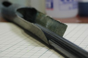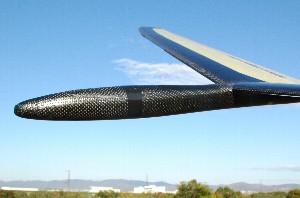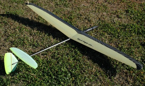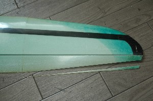 翼端のフラッターが発生しましたので翼端を5ミリ程度落としました。 これは結構効き目があって、フラッターが解消されました。(翼端の空気抵抗も減少するようです) |