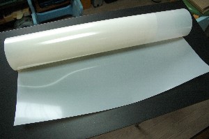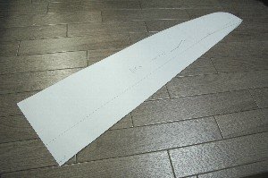 バギング用の型板は R/C Web Shop Kb さんより取り寄せた0.25mm厚のマイラーシート。巾610ミリ。 このフィルム、初めて製作する際には、探しに探しても結局手に入らず、A2サイズのクリアファイル(文房具店で調達)を使用していました。 以前と比べると腰があってしっかりしています。 |