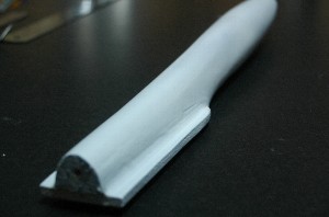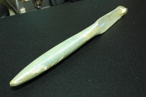 離型完了。きれいにできあがりました。と言いながら、ミイラ巻きにした跡がしっかりと残っていますのでサンディングで凹凸をならしてからエポキシ樹脂を塗って仕上げることにします。 |
