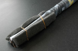 198gのカーボンクロスを取り寄せてやりなおし。 いいかげん、成功させないと・・ 主翼台座部の逆R部分にはポリエチシートをあてたあと、スポンジをかましてマスキングテープ巻き。 胴の部分にはポリエチレンゴミ袋をテープ状にしてミイラ巻きに。 |