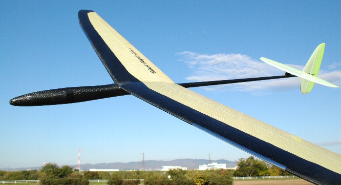 今回は10月中旬につくり初めて、12月上旬に完成しましたので製作期間2ヶ月弱(土日のみの工作)。 前作のSuperGeeは4ヶ月かかりましたので半分で済みました。やはり、慣れというのは大きいです。 強風の中、恐る恐る初飛行。後ろ重心のようですのでPODにバラストを追加して・・ すごいぞ!! 強風でも前に出て行きます。しかも高度低下が少ない! 思わずにんまり(*^▽^*) バラストを12g搭載して234g。目標体重より少しオーバーですがすばらしい性能の飛行機が完成しました。 H師匠、淀川滑空班の皆さんありがとうございました。 |