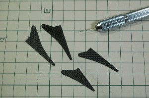 水平尾翼と垂直尾翼の位置出しをして、エルロン・エレベーターのリンケージ用マイクロカーボンパイプを予め取り出しておきます。 |