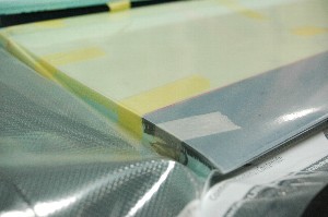 エポキシが回り込んだ場合の離型の為に前縁と後縁のあたりに梱包用のPPテープを貼っておきます。 | ||||