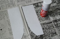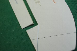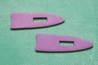 予めデザインを決めた上で、型紙を準備します。 型紙の先っぽの出っ張りは位置決め用です。 型紙は左右各1枚準備します・ |