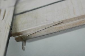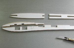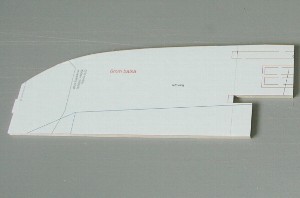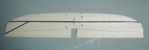 型紙を貼りなおして、エルロンを切り出し、ヒンジラインのカットを行います。 型紙ではトリエルロンになっていますがトリエルロンの作り方が?なので通常のエルロンにしました。 |