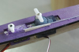 エルロンを取付け後、180度折り返した状態でトーションスプリングを差し込みます。 これだけで完了。リンケージを軽く仕上げることができ、とても優れたアイデアだと思います。 |