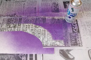アクリルラッカースプレーを吹いて、型紙を取り除きます。これで完全に乾くのを待ちます。 |
