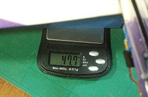 完成全備重量は47.7g。目標の45gには届きませんでした。 補強の為にと、瞬間接着剤の使い過ぎました。おかげで強度はあり余っています。 |