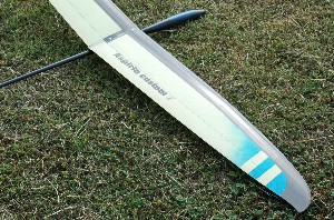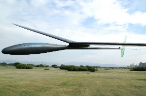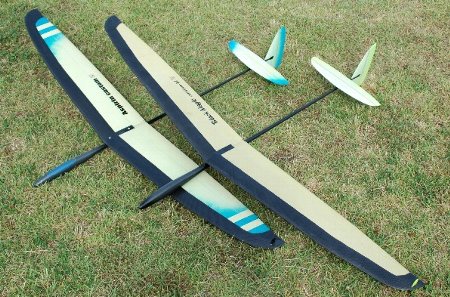 <6月某日初フライト> 強風の中での初フライトとなりました。下手な槍投げグライドテストで失速させると機体を壊すことになりかねないので軽くランチしてグライドテスト。前作機の送信機データをコピーして動翼のニュートラル調整のみしていましたが、殆どトリムの必要なし。 数投のテストの後、フルランチ。ランチ高度は前作機並みに・・と言いたいところですが、機体をかばうランチで力が乗りません。 それでも、サーマルに入ると強力な上昇力でグングン上がっていきます。また、風に対してグングン入っていきます。滑空性能は前作機以上であることを実感できました。 この日は風が強まってきたので早めに引き上げました。 <翌週、2日目のフライト> やはり浮きの良さを感じます。機体の軽さが効いているのでしょう。サーマルに敏感に反応し、サーマル内では強力な上昇力を見せてくれます。また、旋回もとてもスムーズです。 少し走り気味なのでテールに1gのウエイトを足してみましたが風上への入りが悪くなってしまいましたので元の方がよさそうです。結局、元にノーバラスト状態に戻ってしまいましたが、今後いろいろとやってみようと思います。 それから、ランチが全然ダメです。新しい機体を大事にしようという気がはたらくのでしょう。腰が引けて全く上がらなくなりました。 何よりもランチの矯正が必要です(;^_^A 追伸)主翼の塗装は表面だけなのですが、裏からも透けて見えてGOODです。 |