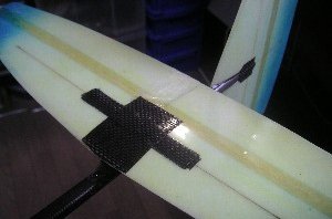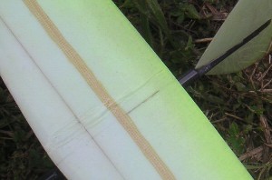 尾翼を新品に取り替えるか悩んだのですが、取りあえずは補修で翌日の試合に臨むことに。 補修による重量1.5g増。 |