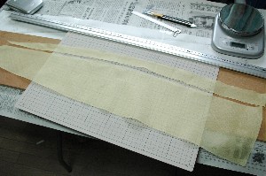 0.8ozのアラミドクロスは繊維が捻れにくいので扱いが楽です。また、カッティングマットの上にのせればカッターで切れるのでカットも楽チンです。 ただ、押さえなしでカッター刃を走らせると繊維が捻れてしまうので定規を使うか、型紙にで押さえながら型紙に沿わせてカットするとうまく行きます。 |