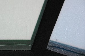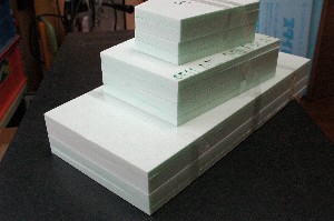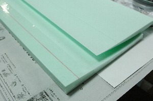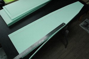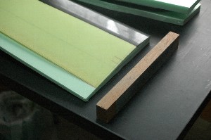 コアは株式会社JSPの「ミラフォーム」でカットして頂きました。たまたまO工房さんが使ってみませんか?ということでしたので。 左:ミラフォーム(開SP)、右:スタイロフォーム(ダウ化工) ちなみに、スタイロフォームに比べて若干(10%程度)重いとのことです。色がライムグリーンなのがいい感じ。 |
