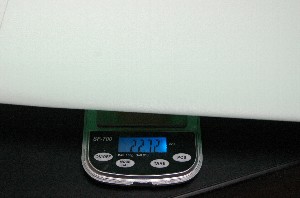 体重測定・・114.3g!!対策の甲斐あり。 予想以上にリカバリーできました ♪~♪ d(⌒o⌒)b♪~♪ でも樹脂をかなり絞りましたので、最初に貼った裏面のようにツルツルにはなっていません。また、表裏で樹脂量の他にアラミドの巾も異なります。裏表で強度が異なるもはちょっと気になるところです。 <重量データ(備忘録)>