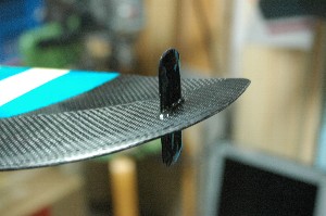 続いて、ハードポイント(かんざし)の準備。 予め、カーボンシートを仕込み。かつ奥の面もカットを入れておきましたので、簡単にかつきれいに穴を掘ることができました。 このアイデア、いけてます。 |