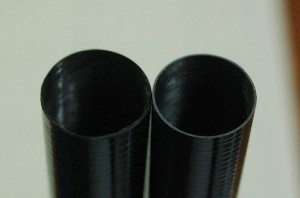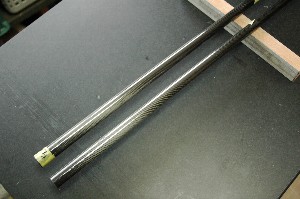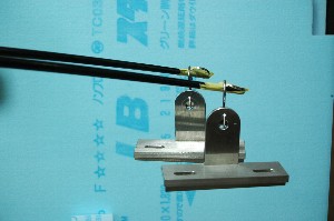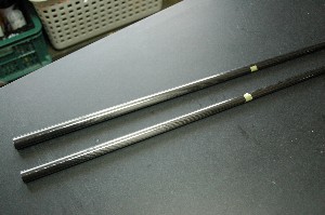 逆に同じ位置に重心を揃える様に重りを貼ってみました。 Mojo用パイプの太い側に1.7gの重りを貼る事で重心が同じになりました。(奥ががMojo用パイプ) |