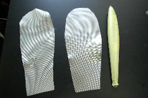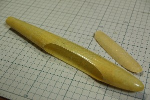 翼端を成形。大きく絞り込んでいます。 ペグまわりの強度が不安なのでクロス貼り時に、補強を加えることにします。 |