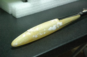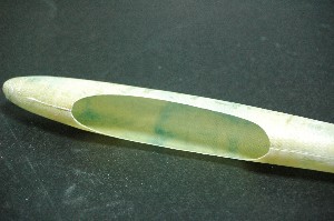 上記により重心位置がMojo用パイプに比べて約50ミリ前。 ※写真の黄色いテープがパイプの重心位置です。(手前がClairパイプ) |