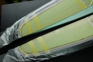 ネガティブコアの後縁、前縁、両端部にPPテープを貼って、準備完了。 |