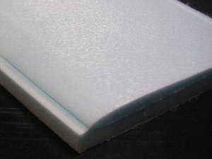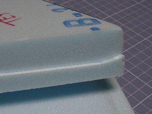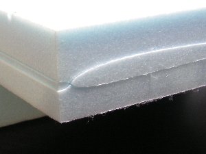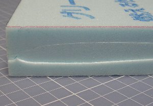 【注意点2:熱線の位置】 キレイにカットできたと思って良く見ると、下面が部分的に水平になっていました。 原因はテンプレートの高さより電熱線の最下位の高さの方が高かったのが原因。 |