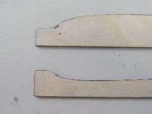 写真のように、水平部から翼型に入る部分にR(カーブ)をつけて熱線が走りやすいようにしました。 上のテンプレートは瞬間接着剤を盛ることで形成しました。 |