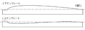【注意点3:テンプレートのすべり】 テンプレートの滑りが悪いとこのような事も起こります。 テンプレートは1回毎に滑りを確認し、微妙な凹凸がある場合は都度サンドペーパーで平滑にしてやります。 写真は失敗例。 |