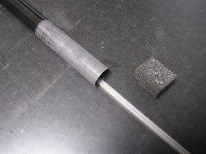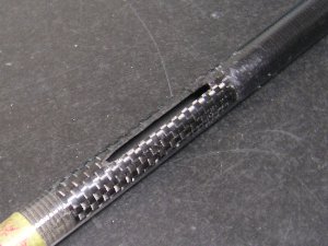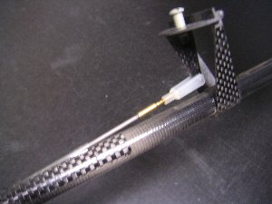 リンケージは1.8ミリのカーボンロッド+アウターチューブの構成。 予めブームに仕込んでおいてからPODを接着します。 アウターチューブが内部でゴソゴソしないようにスポンジを数箇所にいれて固定します。 |