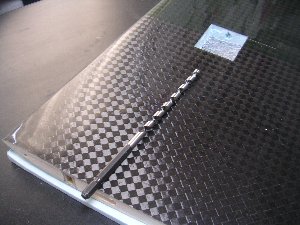 ウイングボルトの穴をあけた後、皿穴加工をします。 以前に木工用で買い揃えていた皿穴ビットを使用してみました。 皿穴加工の部分がカーボン・エポキシ・合板と固いもので出来ていたので、とてもきれいに皿加工できました。これなら金属の座金を埋め込む必要はありません。 |