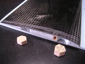 ハードポイントを作ります。 今回はバルサをベースに上端と下端は2ミリ航空ベニアを貼り付けて強化しました。 |