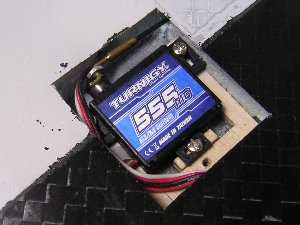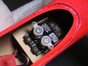 サーボベッドをエポキシ接着剤で貼り付けてサーボを取り付け。 サーボが動く事を確認して取り付けたのですが・・・・ 完成後にセッティングしようとすると、動きがぎこちない・・ トリムのひとコマに反応してくれません。 |