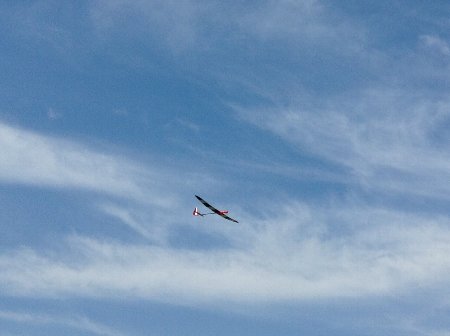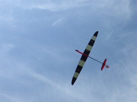 その他、いろいろと調整が必要ですが、サーマル大会の日程も目前に迫っていたので 10分MAXの競技で1本目は9分59秒でしたが2本目は8分30秒・・・ それでも、いつものハンドランチグライダーとは違った楽しみがあります。 このサイズの機体の自作はダイナミックで、達成感も大きいです・・・自己満足ですけど ヾ(´ρ`)ノ゛