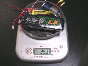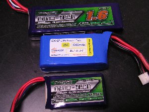 前の重量を減らす為にバッテリーは小型の物を買い揃えました。 当初)Turnigy nano-tech 1600mA 3S 25~50C 135g 2番目)hyperion LG325-1300-3S 25C 103g 3番目)Turnigy nano-tech 850mAh 3S 45~90C Lipo Pack 73g