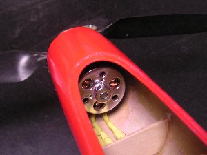 モーターの搭載。 モーター本体はスリムなのですが、3本のケーブルの出っ張りが邪魔です。なんとかギリギリ取り付きました。 |