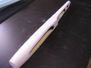 準備ができたらいよいよ接合です。エポキシ接着剤をたっぷり塗って接合します。ブーム側は#600程度のサンドペーパーで表面を荒しておく事を忘れずに。 |