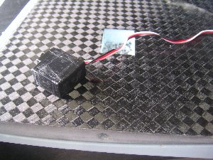こちらは、中央ピースのフラップのサーボベッド。 頂き物のウイングサーボ。メーカーは?聞いたことが無いブランドです。 |