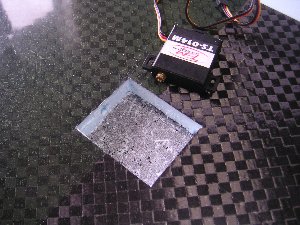 フラップはメタルギアのウイングサーボを使用。 頂き物のです・・・・。 航空ベニアを積層してサーボベッドを作ります。 |