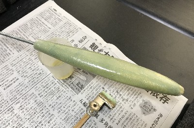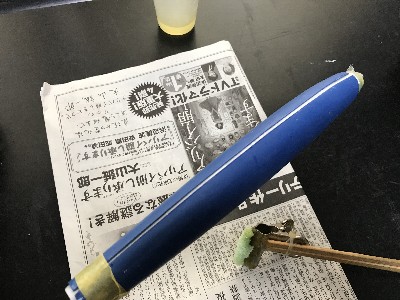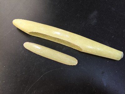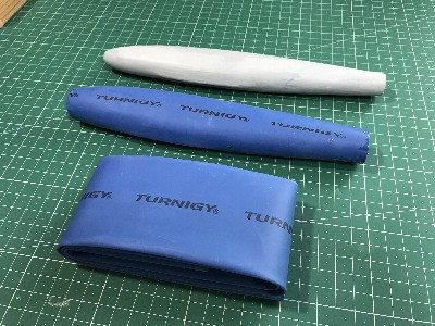 表面を平滑に仕上げる為にいろいろな方法がありますが、シュリンクチューブを用いる方法は離型後のサンディングが楽です。 私は予めシュリンクさせて型をとったものを何度も再利用していますが、樹脂作業の後にその都度シュリンクさせても良いでしょう。しかし、シュリンクさせる際の熱で樹脂がどうなるかわかりません。 予め型をとる場合は、雄型だけの状態でシュリンクチューブの型を取ると一回り小さく出来上がりますので注意してください。 電気用のシュリンクチューブに代えて竹ざお用のシュリンクチューブも使えると思いますが、これも今では売っていないかもしれません。 その他には |