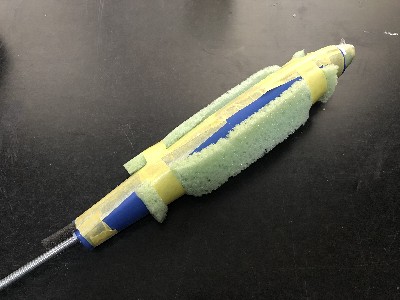 私のPOD形状は両サイドにRが少なく平面に近いので、浮きえお抑えるために両サイドにもスポンジを当てます |