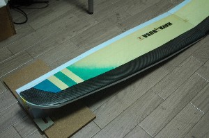 上下左右を間違わないようにマジックで大きく記入。 Dボックス構造のカーボンクロスのラインを書き込んでおきます。 |