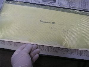次にアラミドをおきます。 樹脂を先塗りした場合に一番問題なのがアラミド。とてもセットしにくい。 |
