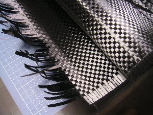 師匠より別注の巾5ミリのカーボンクロスを分けて頂きました。 ・・・もったいないですがこれをばらして使用します。 |