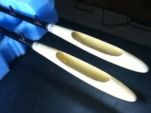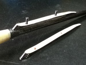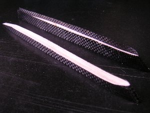 主翼のサドルはバルサ材を整形した後に、カーボンクロスを瞬間接着剤で軍艦巻きにしたあと、余分なカーボンクロスを切り取ります。 以前はバルサで製作したサドルをパイプに接着した後、パテでフィレットを整形した後に塗装仕上げしていましたが、とても手間がかかっていました。 この工法の方だと仕上がりもきれいだし、かなり時間が短縮できます。 |