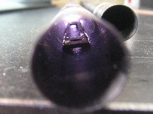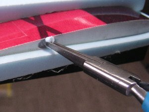 パイプの中の写真。パイロンベースはこのような状態でパイプ内部に瞬間接着剤で固定します。 パイロンベースにあいている5ミリ穴部分にたっぷりとエポキシ接着剤を塗ってからパイロンを差込んで固定します。パイロンがパイプから突き出す部分は瞬間接着剤を用いて固定します。 適切に瞬間接着剤を用いる事で、エポキシ接着剤が固まるのを待つことなくスムーズに作業を進める事が出来ます。 |