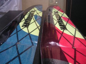 バギング完了。 ピカピカに仕上がりました。でも樹脂が十分過ぎ? カーボンスパーは厚さ0.15ミリのカーボンキュアシートを使用 |