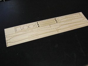 コアカット用のテンプレートは1.5ミリの航空ベニアからレーザーカットで切り出し。レーザーカットは近所の加工屋さんにお願いしました。 1.5ミリの航空ベニアが写真のサイズのものしか手元になかったので無理やりレイアウトしてキチキチで納めました。 ついでにサーボベッドと主翼パイロンベースも・・・ |