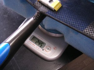 完成重量は245g(Batt込)・・主翼が重量オーバー気味でしたが合格ライン。 ノーズに7gバラストを積みましたので飛行重量252g(翼面荷重約11.5g/dm2)